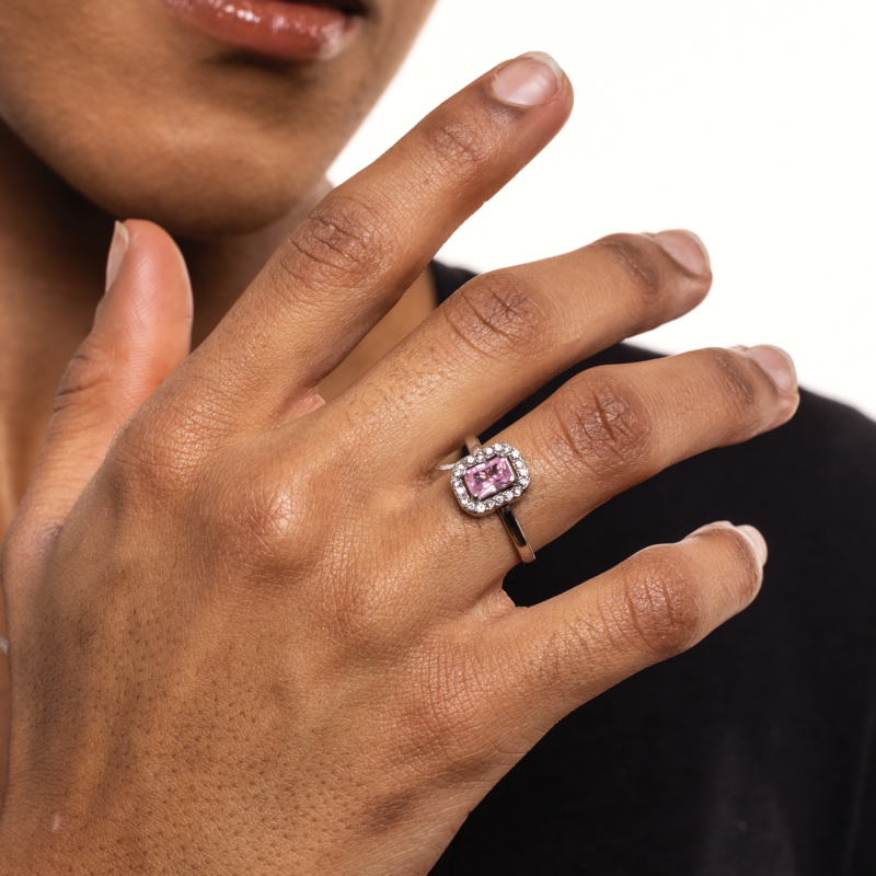 Anello Cristallo Rettangolare Rosa