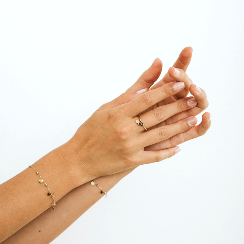 Anello Cuori Oro e Cristalli Neri