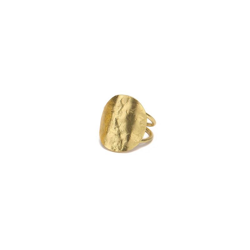 Anello a fascia con placca circolare battuta. Regolabile. Ottone riciclato, Lavorazione artigianale.