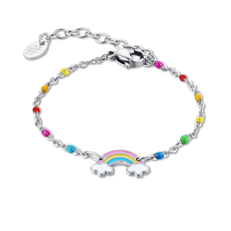 Bracciale bimba con catena con drop smaltati arcobaleno e arcobaleno