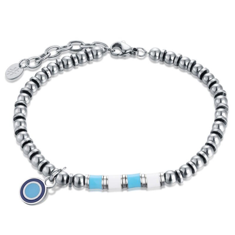 Bracciale in acciaio inossidabile e ipoallergenico ed ematite rodiata,