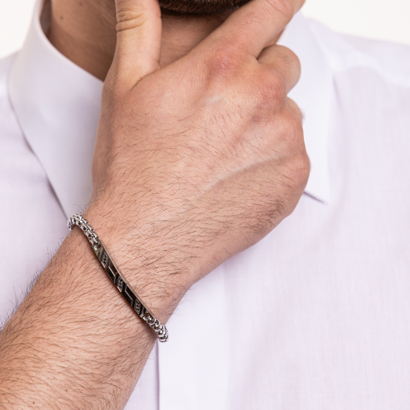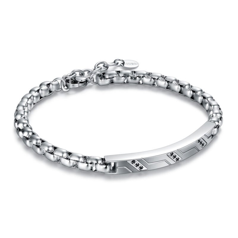 Bracciale Con Targa e Cristalli Neri incastonati