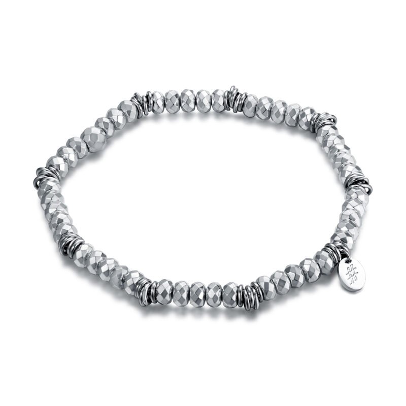 Bracciale Elasticizzato con Ematite Sfaccettata rodiata 4mm Con Anellini