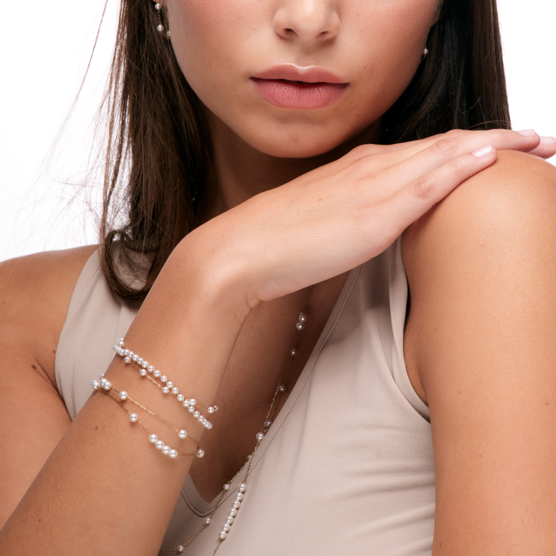 Bracciale in Madreperla e Sfere di acciaio con pvd oro