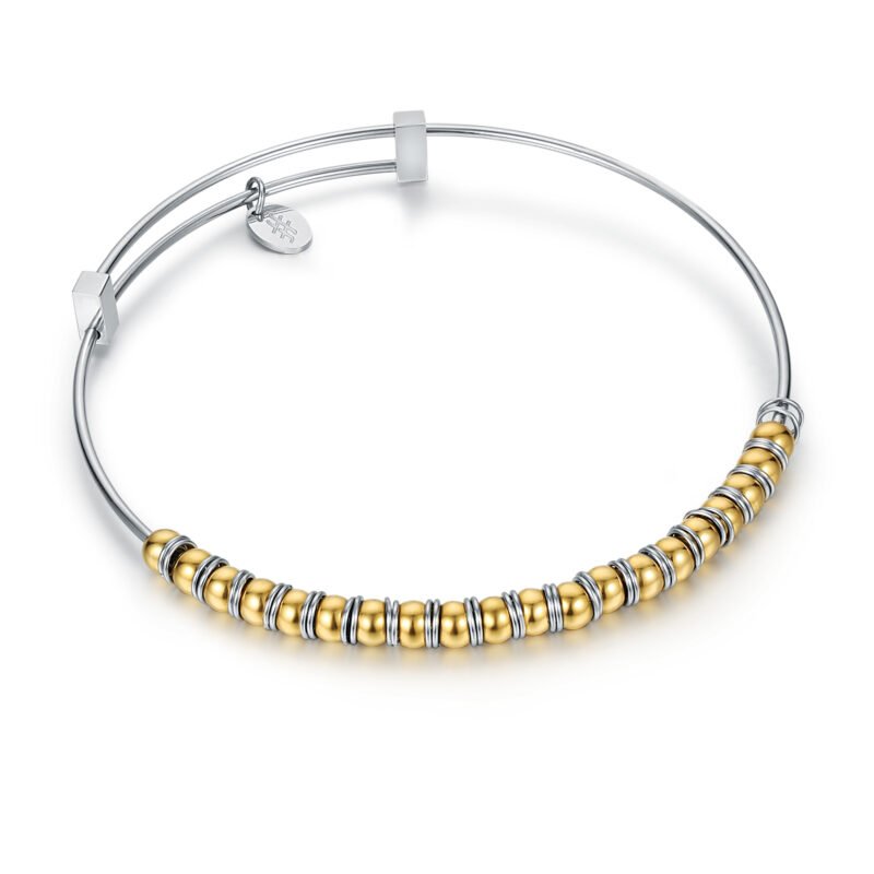 Bracciale Molla in acciaio armonico con Sfere dorate ed Anellini