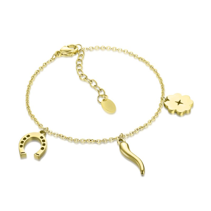 Bracciale Quadrifoglio, F. di Cavallo, Cornetto Pvd Oro