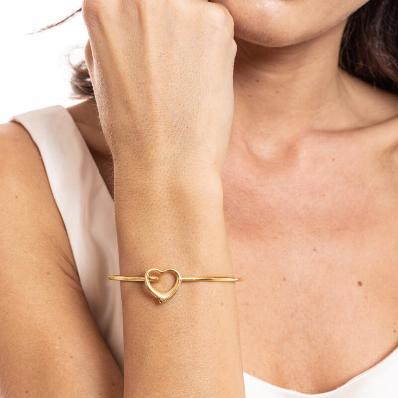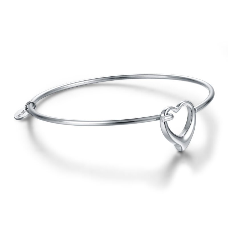 Bracciale rigido con chiusura a cuore grande, in acciaio armonico