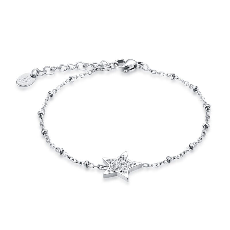 Bracciale stella con cristallini bianchi e catena con piccole sfere acciaio