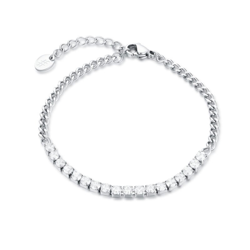 Bracciale Tennis Cristalli Bianchi 3mm catena grumetta da 3mm