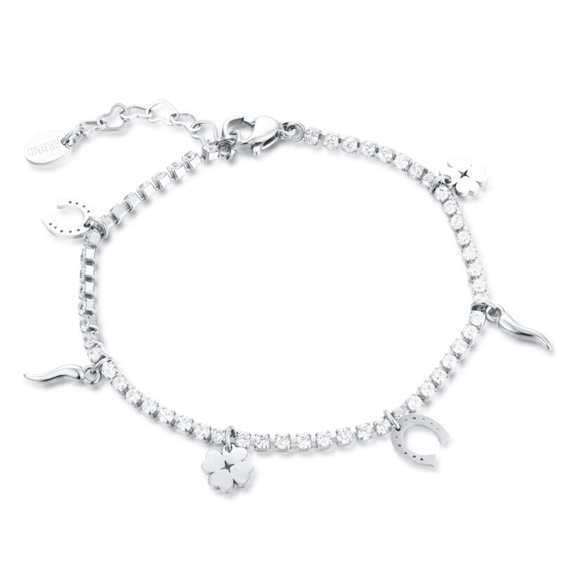 Bracciale Tennis Cristalli Bianchi 2mm e simboli della fortuna pendenti