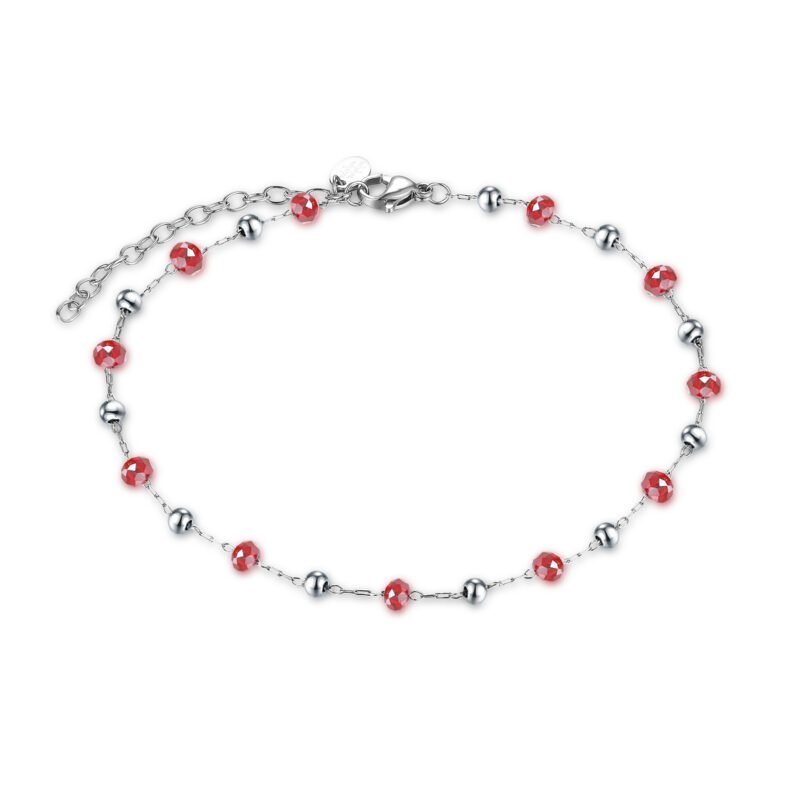 Cavigliera con Cristalli Rossi e sfere di Ematite rodiata del diametro di 3mm