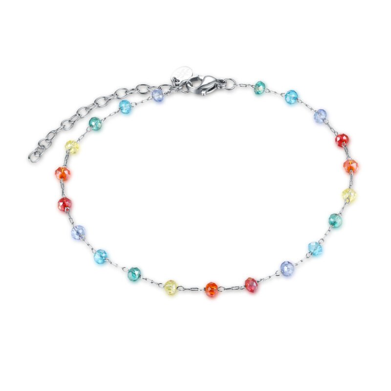 Cavigliera con Cristalli Arcobaleno e sfere di Ematite rodiata del diametro di 3mm