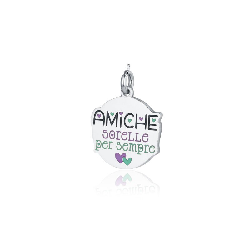 Charm con scritta smaltata “Amiche, sorelle per sempre”