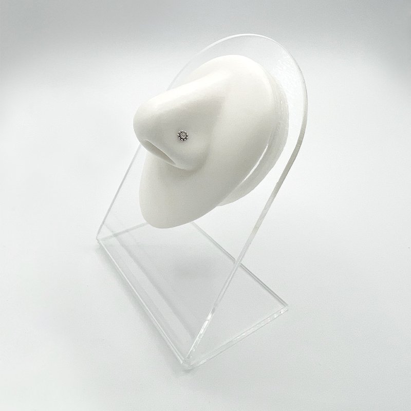 Chiodino da naso a L a forma di fiore con cristallino centrale