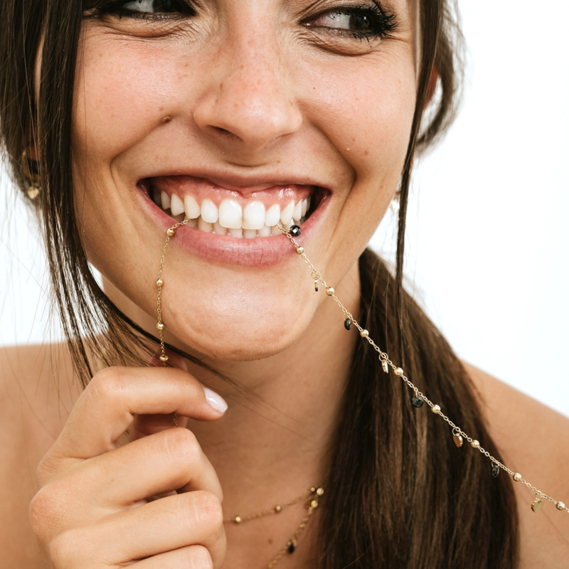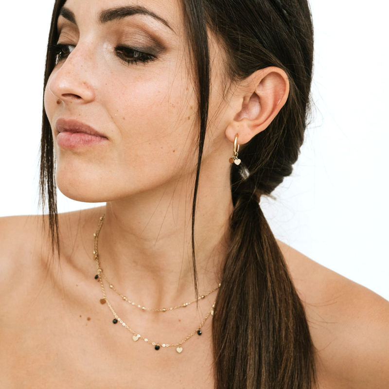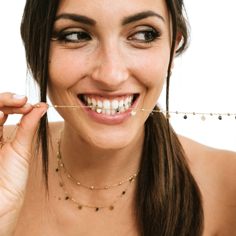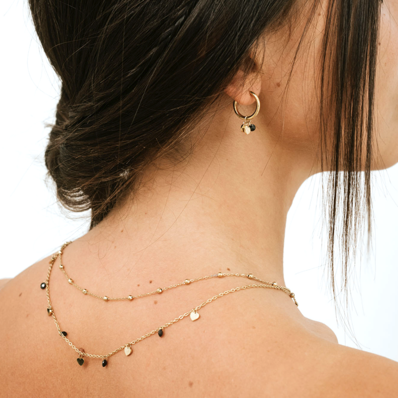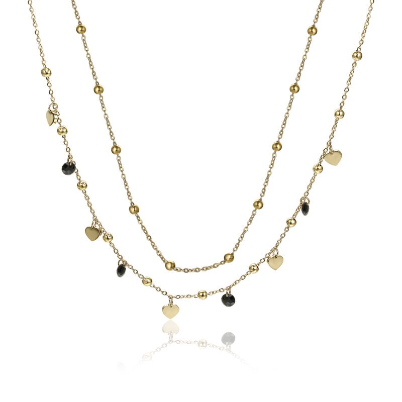 Collana Doppia Cuori Oro e Cristalli Neri