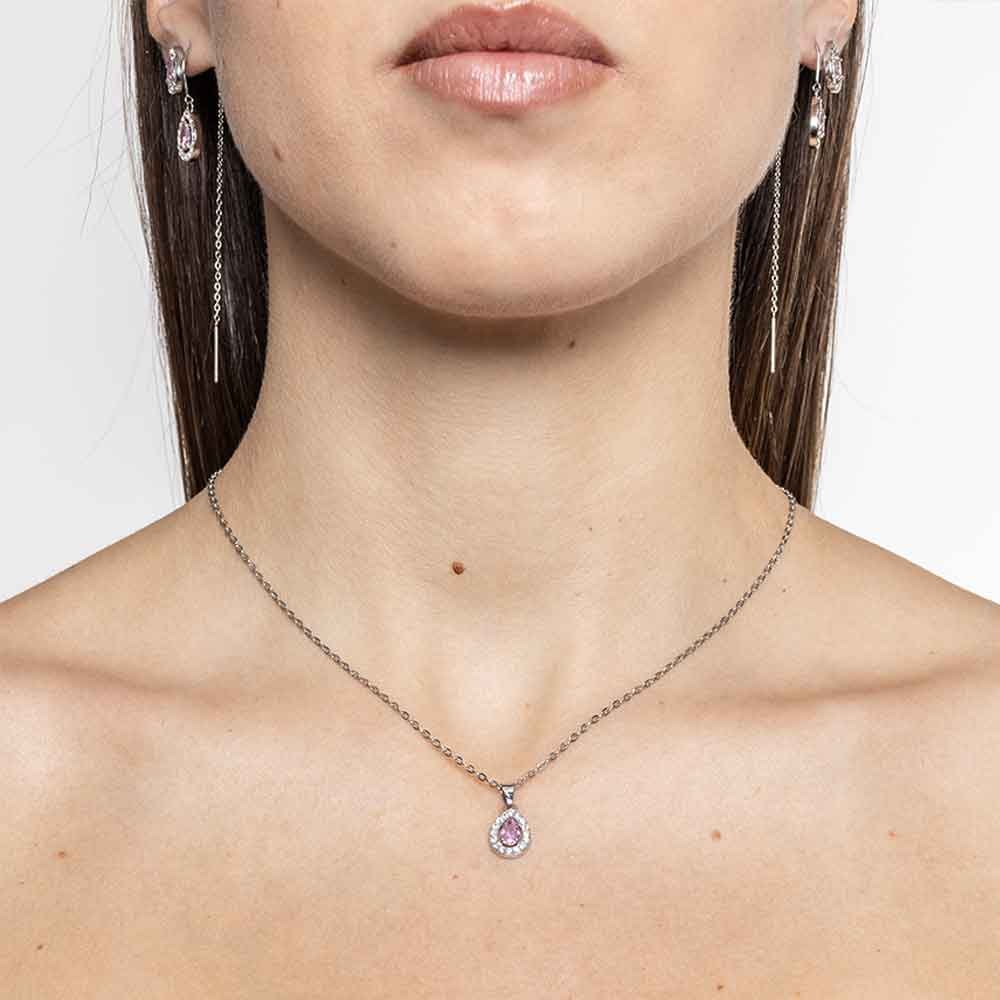 Collana con cristallo a goccia rosa