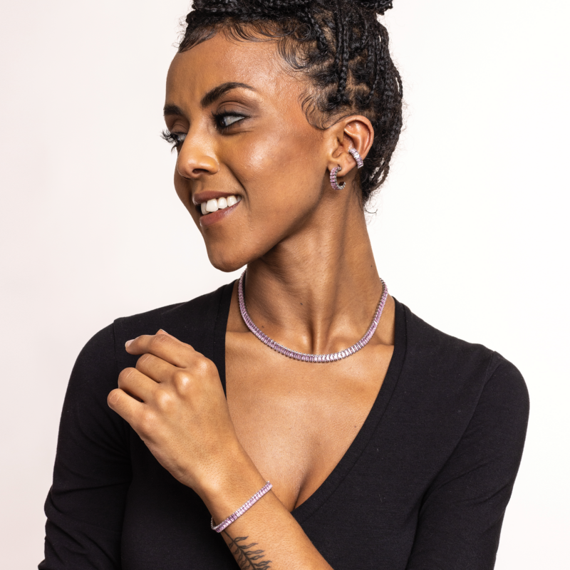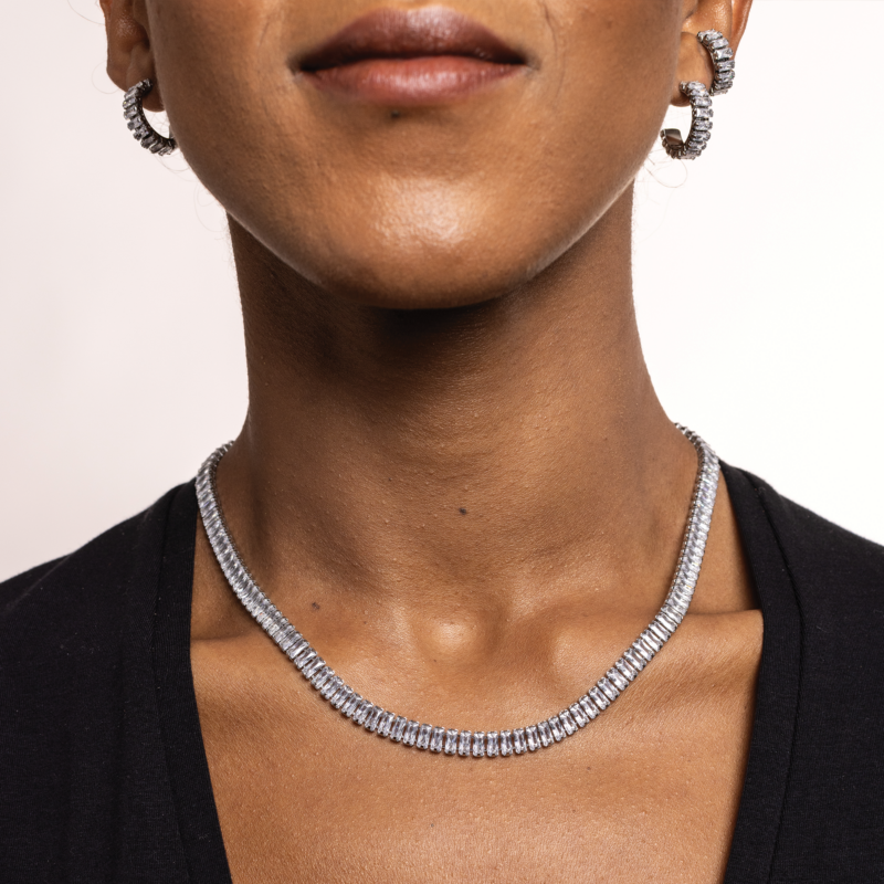 Collana tennis con cristalli baguette bianchi