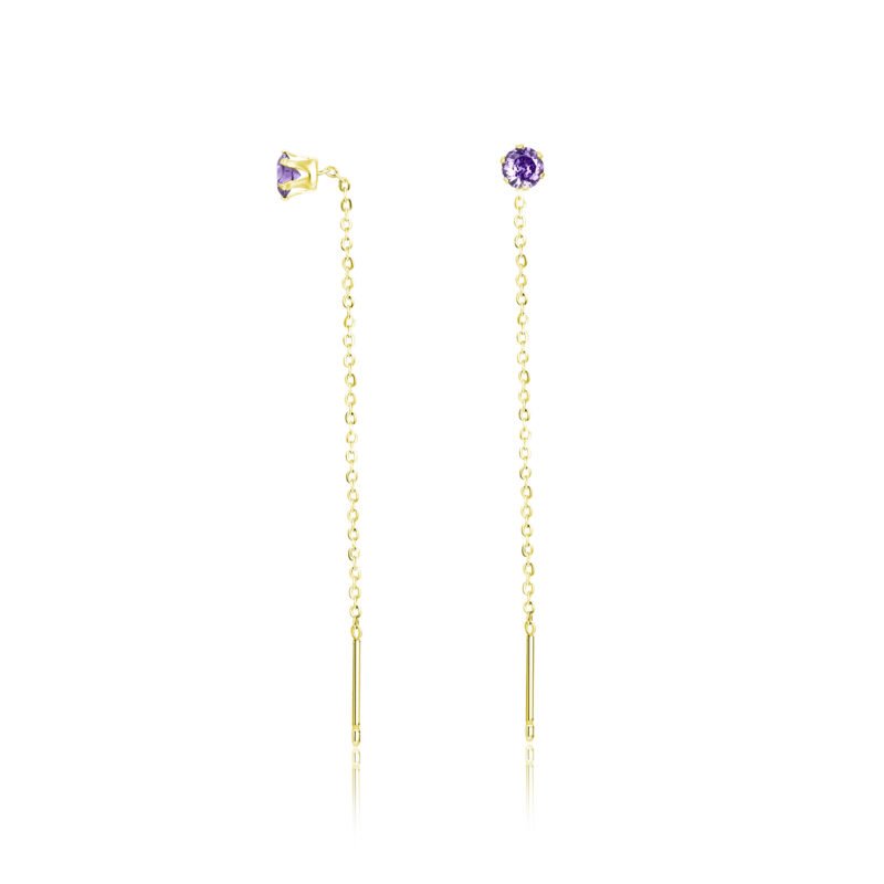 Orecchini Saliscendi cristallo viola pvd oro