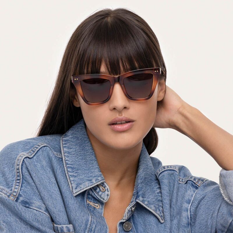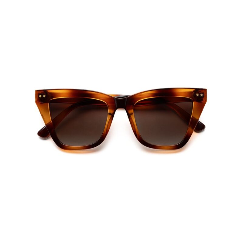 Occhiali da sole Manila rettangolari. Montatura colore caramello sfuamato in materiale riciclato e lenti polarizzate. Nella confezione è inclusa una custodia morbida con panno per la pulizia del prodotto. Categoria di filtro 3. Abbina gli occhiali da sole ai tuoi gioielli preferiti e portali sempre con te. Leggeri, pratici e comodi da indossare, sono i compagni di viaggio perfetti per le avventure di ogni giorno.