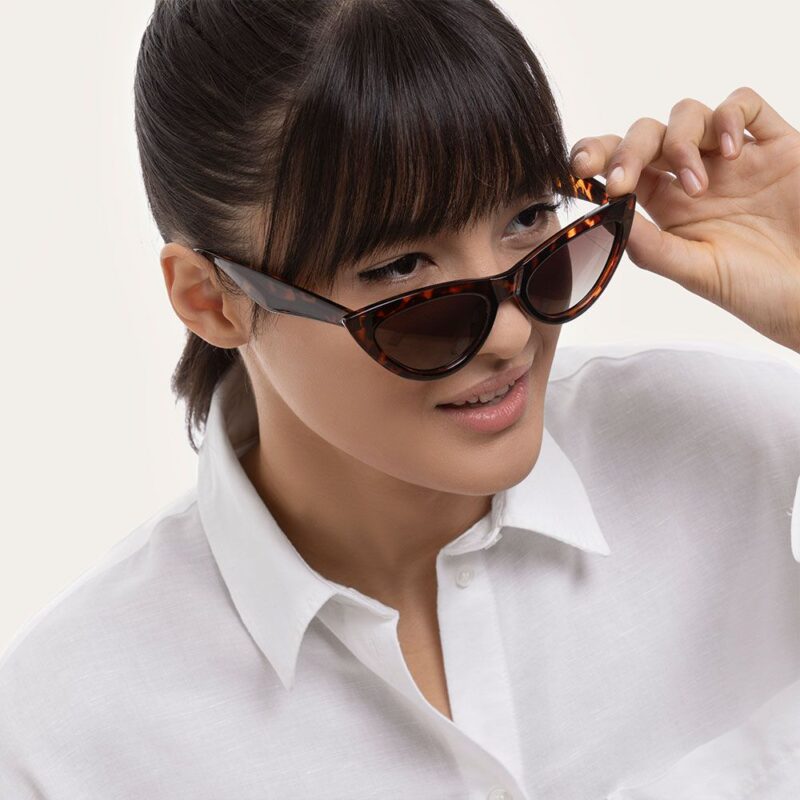 Occhiali da sole Paris modello small cat eye. Montatura colore tartarugato in materiale riciclato e lenti polarizzate. Nella confezione � inclusa una custodia morbida con panno per la pulizia del prodotto. Categoria di filtro 3. Abbina gli occhiali da sole ai tuoi gioielli preferiti e portali sempre con te. Leggeri, pratici e comodi da indossare, sono i compagni di viaggio perfetti per le avventure di ogni giorno.