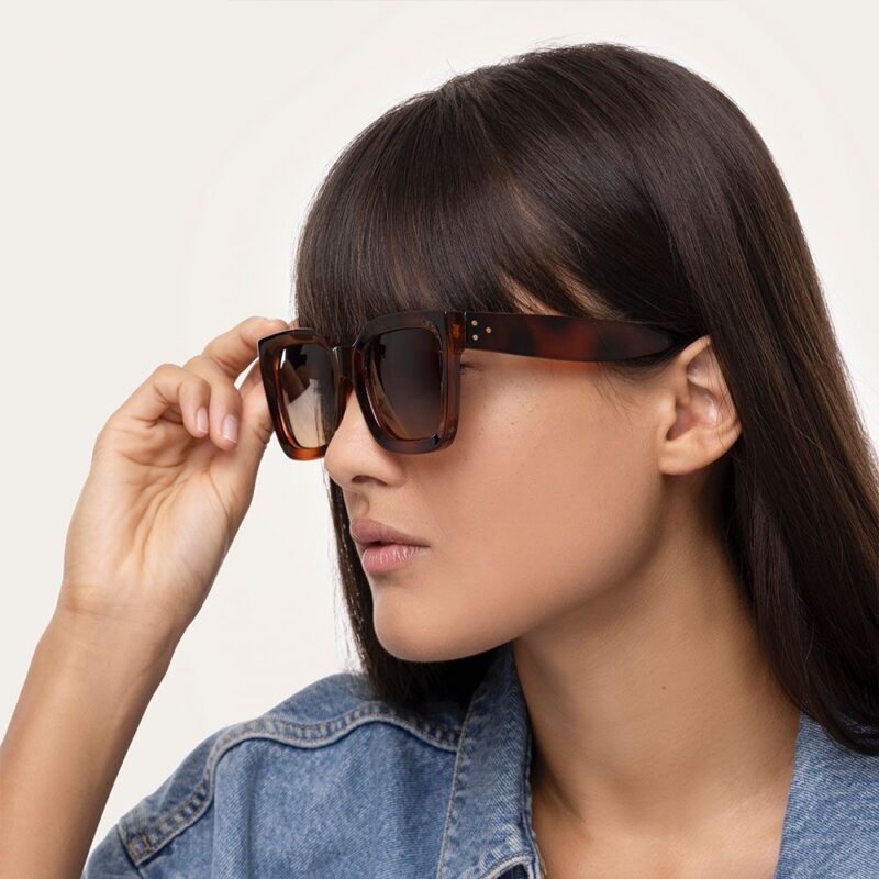 Occhiali da sole Pechino. Montatura rettangolare colore caramello tartarugato in materiale riciclato e lenti polarizzate. Nella confezione è inclusa una custodia morbida con panno per la pulizia del prodotto. Categoria di filtro 3. Abbina gli occhiali da sole ai tuoi gioielli preferiti e portali sempre con te. Leggeri, pratici e comodi da indossare, sono i compagni di viaggio perfetti per le avventure di ogni giorno.