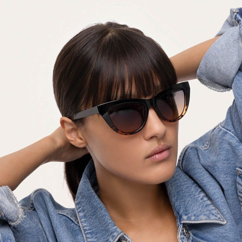 Occhiali da sole Rome farfalla. Montatura colore nero/caramello tartarugato sfumato in materiale riciclato e lenti polarizzate. Nella confezione è inclusa una custodia morbida con panno per la pulizia del prodotto. Categoria di filtro 3. Abbina gli occhiali da sole ai tuoi gioielli preferiti e portali sempre con te. Leggeri, pratici e comodi da indossare, sono i compagni di viaggio perfetti per le avventure di ogni giorno.