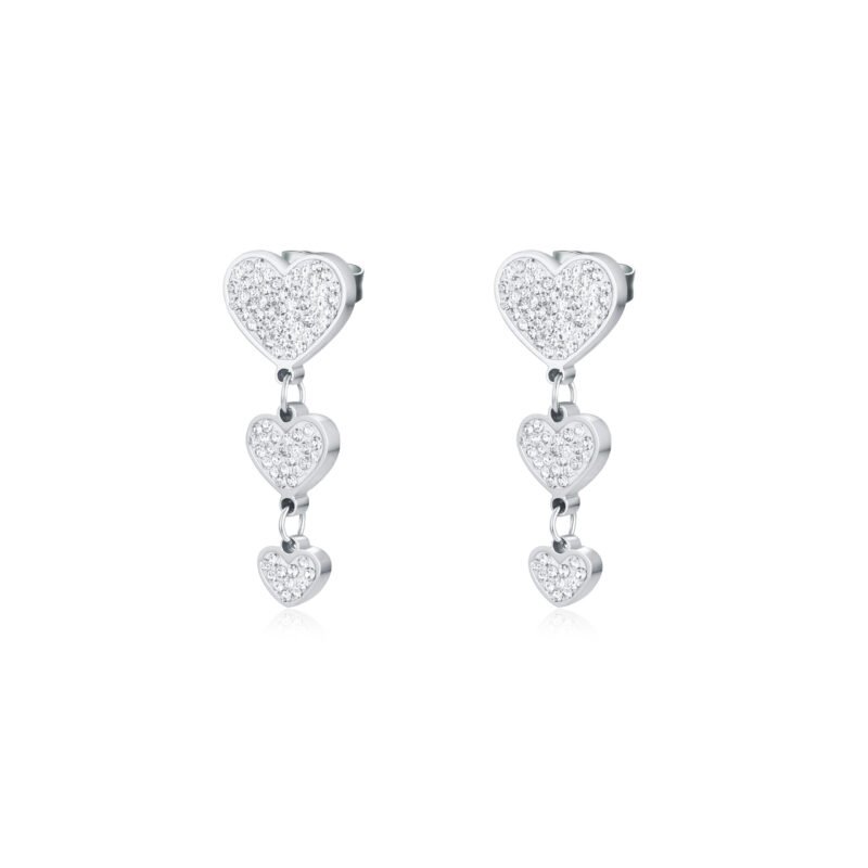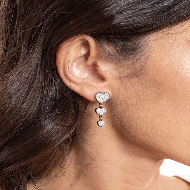 Orecchini 3 cuori pendenti di dimensioni 11mm, 8mm e 6mm.