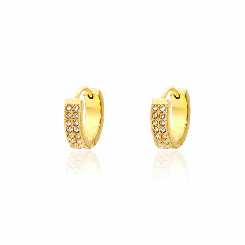 Gli orecchini a cerchio con 2 file di cristalli sono un accessorio essenziale per chi ama i gioielli luminosi, pratici e versatili. Realizzato in acciaio inossidabile, resistente e ipoallergenico, è disponibile in finitura acciaio o oro, perfetti per aggiungere un tocco di luce e personalità a qualsiasi look. Ideale come orecchino da indossare tutti i giorni o come regalo originale ed elegante, è pensato per chi cerca orecchini in acciaio che uniscano design minimal, comfort e un pizzico di brillantezza. Il loro design semplice li rende adatti sia ai look da donna che da uomo.
