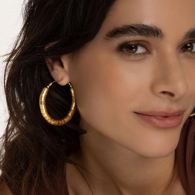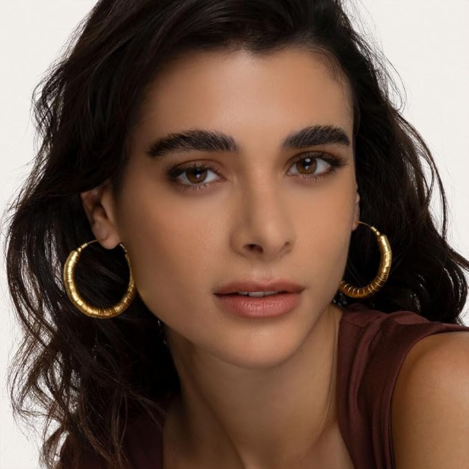Orecchini a cerchio, texture serpente materiale ottone riciclato,