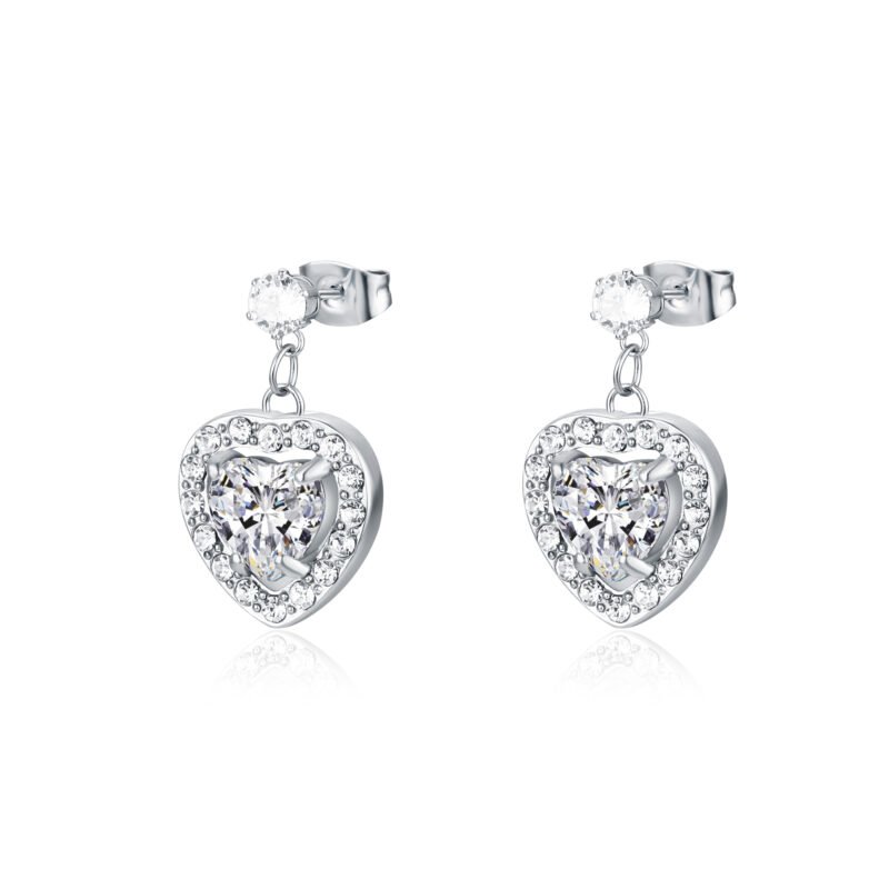 Orecchini punto luce bianco con cristallo cuore bianco pendente