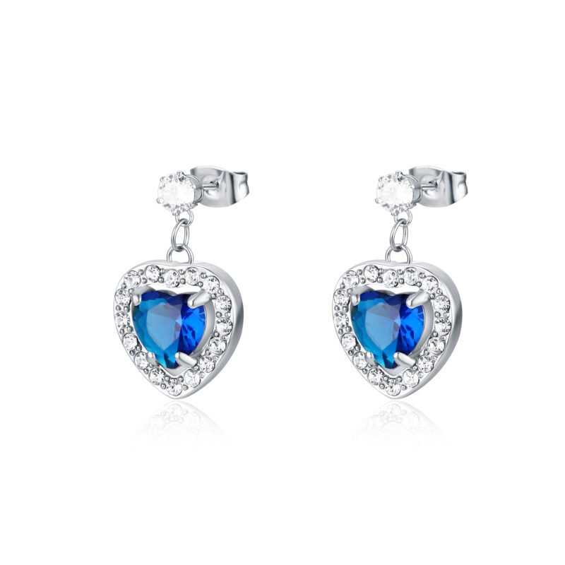 Orecchini punto luce bianco con cristallo cuore blu pendente