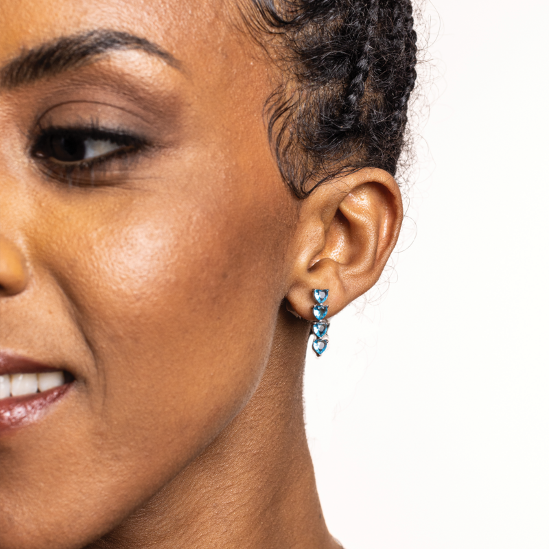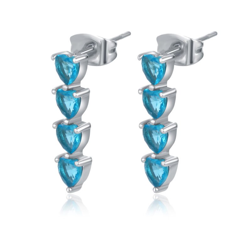 Orecchini con 4 cristalli a cuore pendenti turchesi