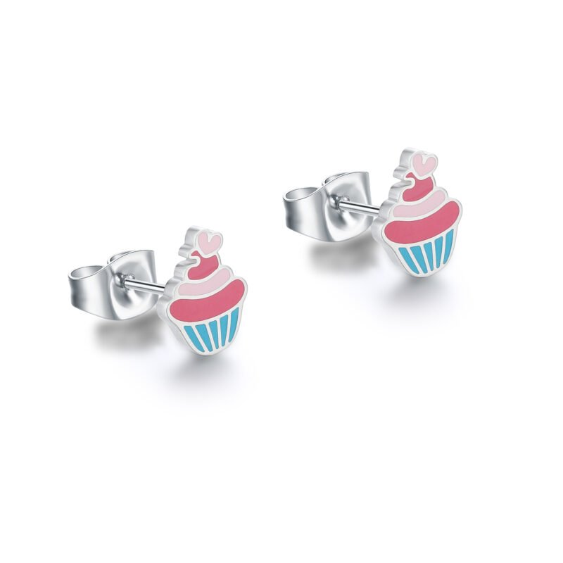 Coppia di orecchini lobo con cupcake smaltato dimensione 9 mm x 6 mm.