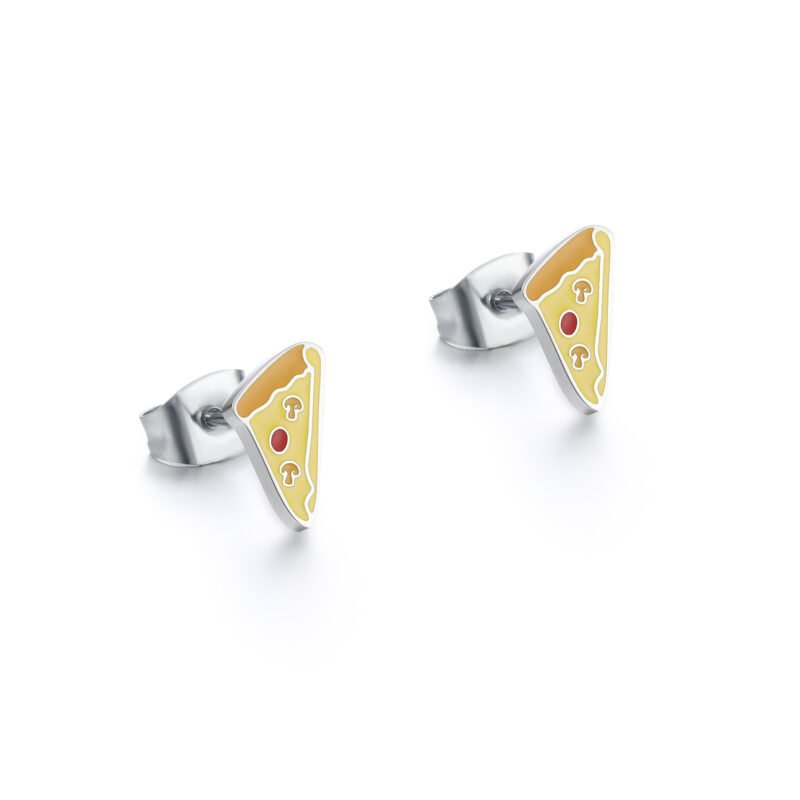 Coppia di orecchini lobo con pizza smaltata dimensione 10 mm x 5 mm.