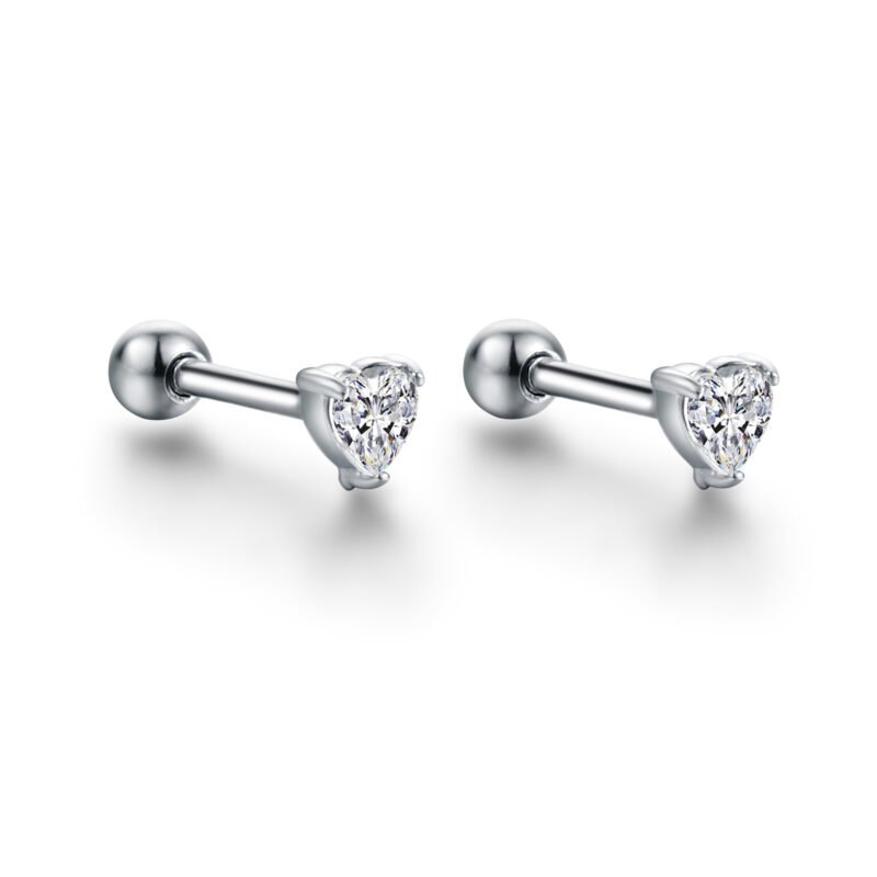 Orecchini con chiusura piercing con sfera filettata con cristallo a cuore bianco