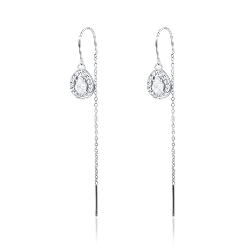 Orecchini saliscendi con cristallo goccia bianco pendente