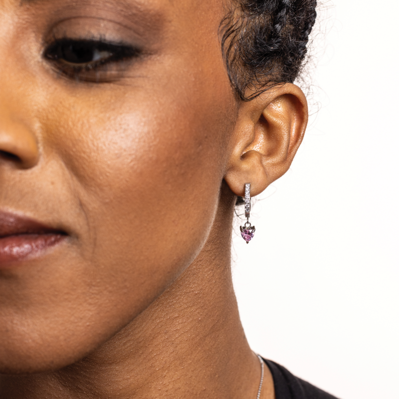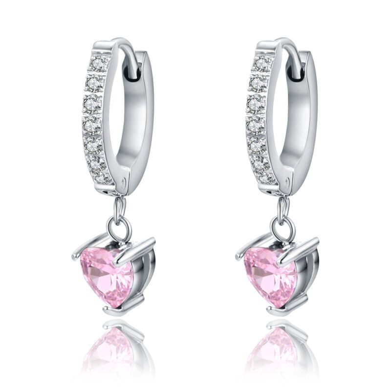 Orecchini a scattino con cuore pendente rosa