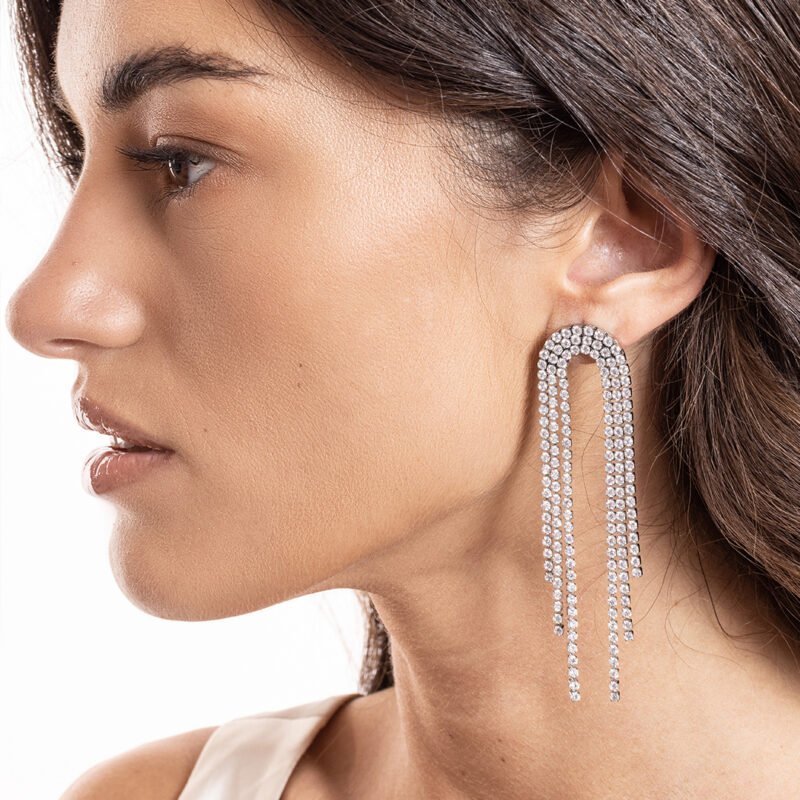 Triplo filo pendente ad arco, lunghezza massima dell’orecchino 8 cm