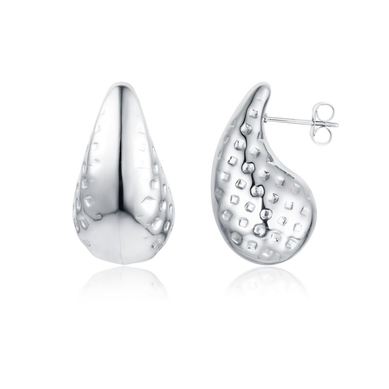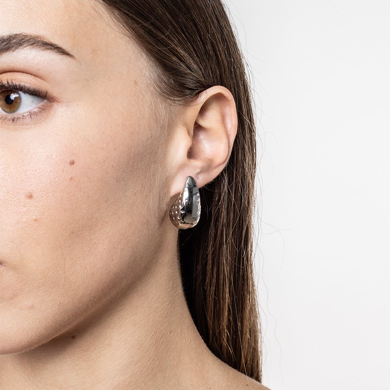 Orecchino drop puntinato versione acciaio