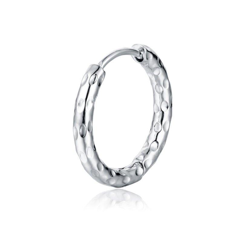 Orecchino singolo a scattino con texture martellata piccolo in versione acciaio