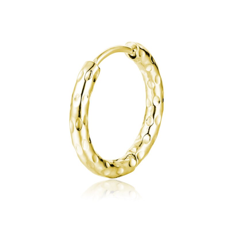 Orecchino singolo a scattino con texture martellata piccolo in versione pvd oro