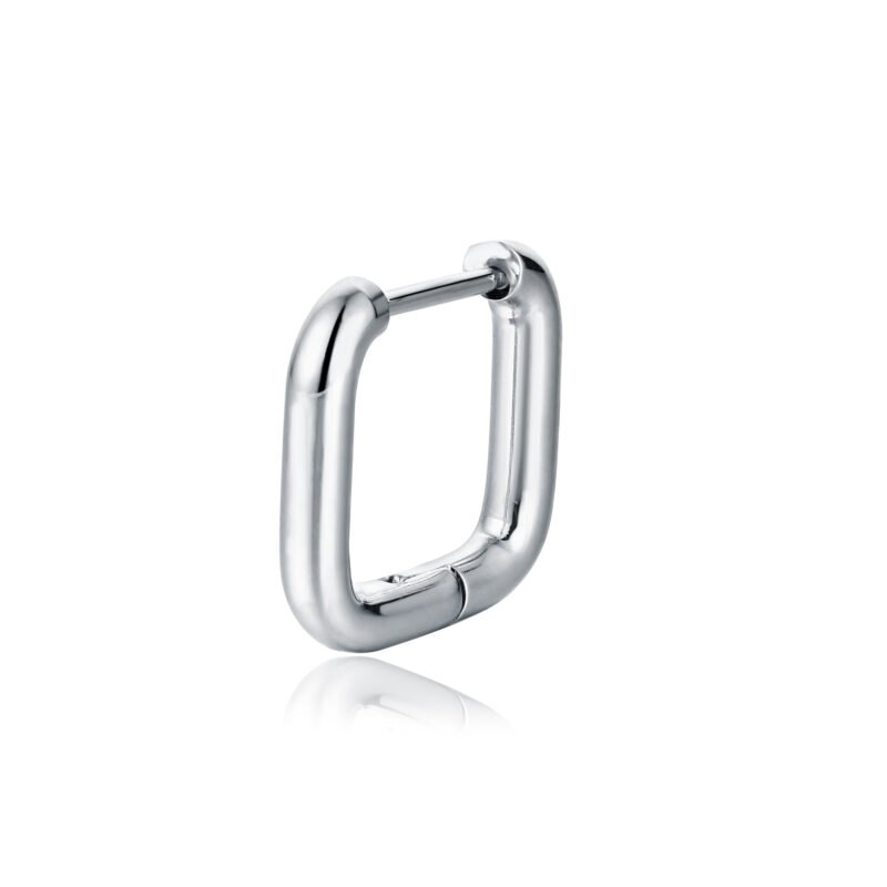 Orecchino singolo a scattino a forma quadrata in versione acciaio