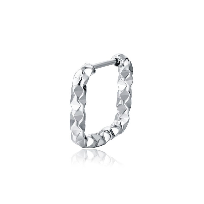 Orecchino singolo a scattino a forma di quadrato diamantato in versione acciaio