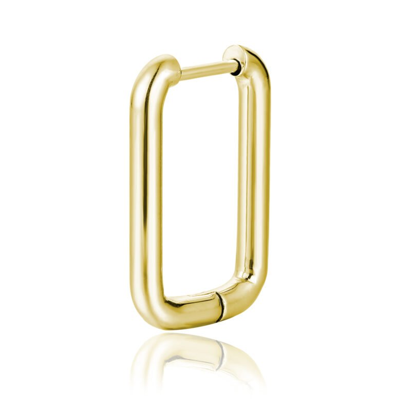 Orecchino singolo a scattino a forma rettangolare in versione pvd oro