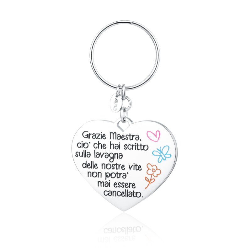 Portachiavi a forma di cuore con frase sulle maestre smaltata
