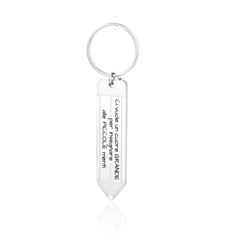 Portachiavi a forma di matita con frase sui maestri smaltata
